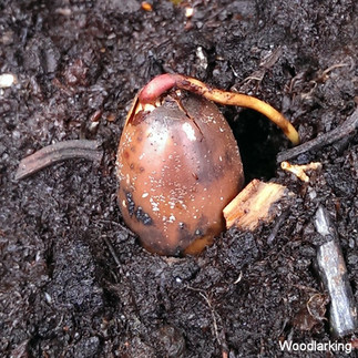 It’s really simple to get them started. Take a pot or seed tray and fill it with soil or compost (molehill earth is excellent if you can find some). Lay the acorns on their sides, leaving a couple of inches between each one. I gently press them into the soil so they’re half-buried, not too deep. Think of how an acorn falls naturally on the woodland floor, germinating right on the surface before sending down a tap root to anchor itself.